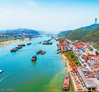 近日,在广西梧州港李家庄作业区,船舶正在进行装卸作业。该港为中国—东盟自由贸易区等提供综合物流服务。