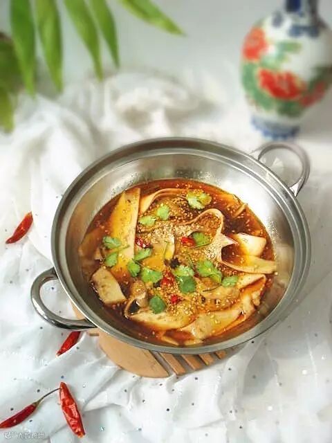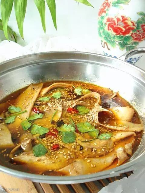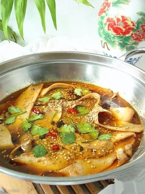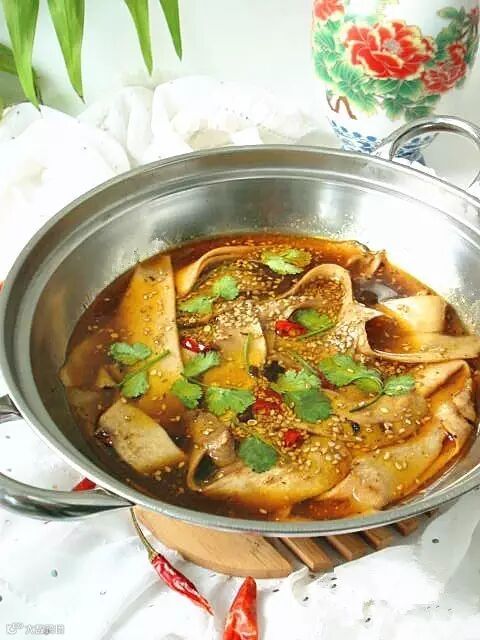 “杏鲍菇营养丰富,富含蛋白质、碳水化合物、维生素及钙、镁、铜、锌等矿物质, 可以提高人体免疫功能,对人体具有抗癌、降血脂、润肠胃以及美容等作用。这道水煮杏鲍菇麻辣入味,做法简单,喜欢吃辣的朋友可以试试。”