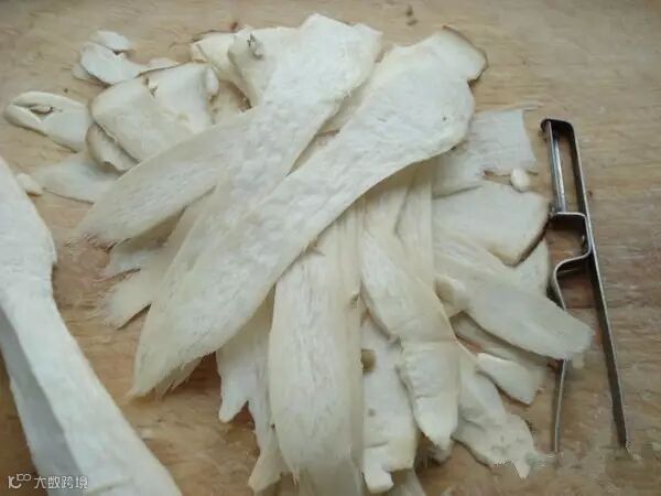 1.杏鲍菇洗净,用削皮刀削成薄片