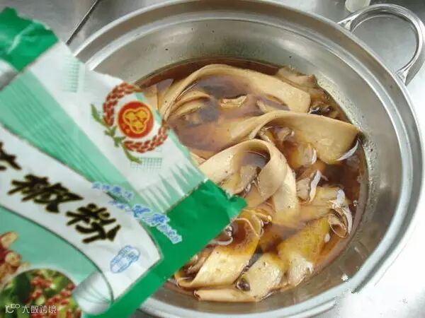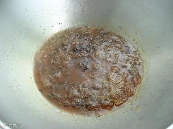 3.豆瓣酱炒出红油后加适量水,加盐,白糖,老抽,煮开