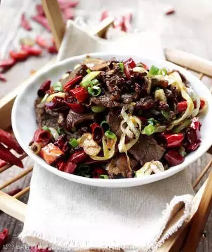1、锅内热少许油,放入花椒爆香,捞出花椒