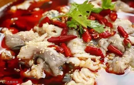 7、另起一锅把五香油倒一部分在锅里,放入花椒和干辣椒段,用小火炸出香味,辣椒的颜色稍变就关火,随即将热油浇在鱼片上即可