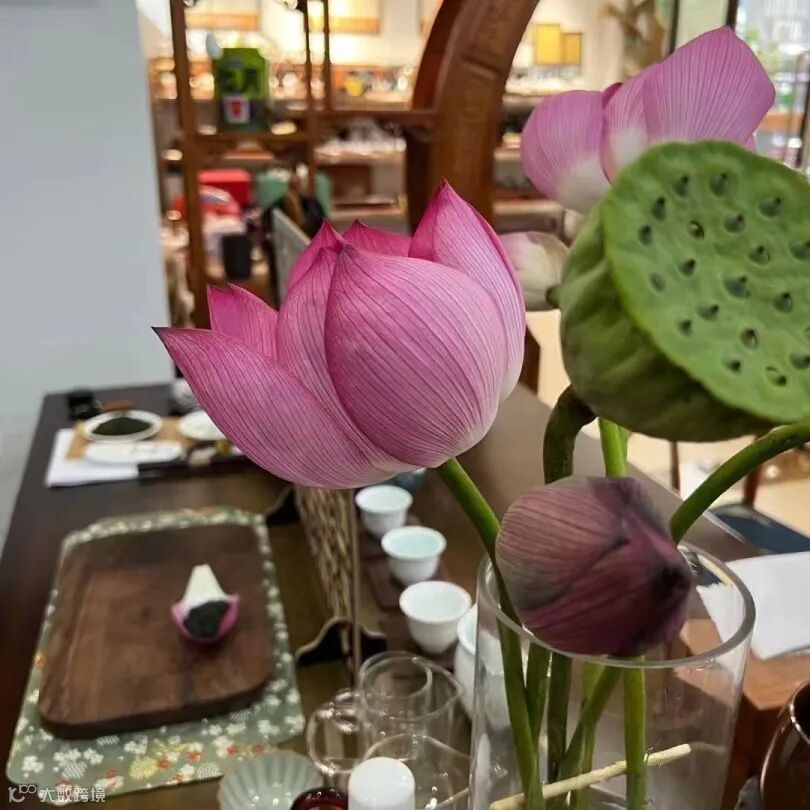 夏天应季的荷花更是点睛之笔