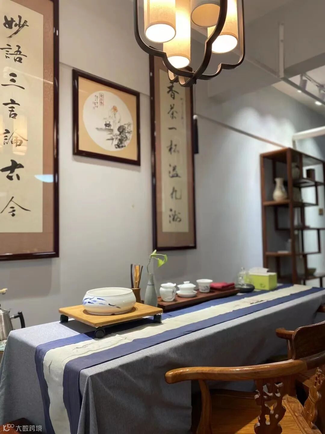中式元素的置物架搭配各种金苔香茶品