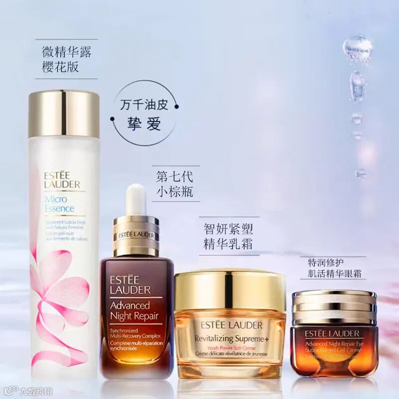 买 雅诗兰黛特润修护肌活精华眼霜+精华露+智妍紧塑精华乳霜+微精华露樱花版