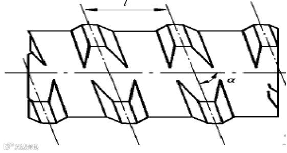 钢筋外形采用螺纹状无纵肋且钢筋两侧螺纹在同一螺旋线上。