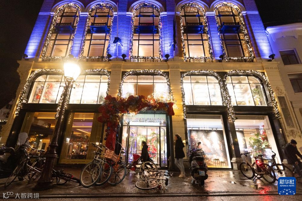 12月21日,行人从荷兰阿姆斯特丹一家商场的橱窗前走过。新华社发(西尔维娅·莱德雷尔摄)