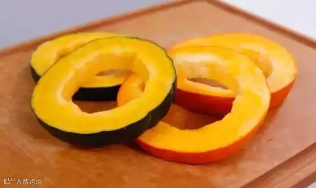 1. 小南瓜切片,去籽,得到南瓜圈。