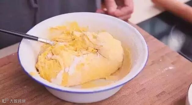 3. 在碗里加入南瓜泥、面粉、清水搅匀,和成面团。