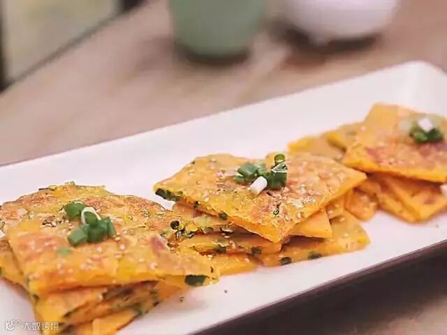 6. 热锅入油,放入面饼煎熟,脆脆的南瓜饼就做成啦。