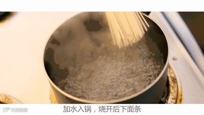 6、锅里加水,水快开的时候下面条,煮熟后捞出,放到冰水中。