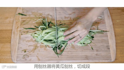 1、黄瓜、胡萝卜洗净刨成丝,切段。