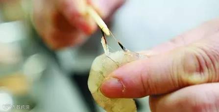2、虾线:在虾的背上有条黑色的线,那是虾的消化道。既然是消化道,里头就会有脏东西,吃的时候最好剔除,既卫生又不会影响口感。虾线其实有两条的,背上一条,肚子上一条。背上的粗所以好挑用针或者小锥子在虾背的中间接缝处挑一下,慢慢扽出来就可以。肚子上的不好弄,直接用剪子从头剪到尾,用水一冲就很干净了。