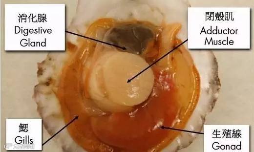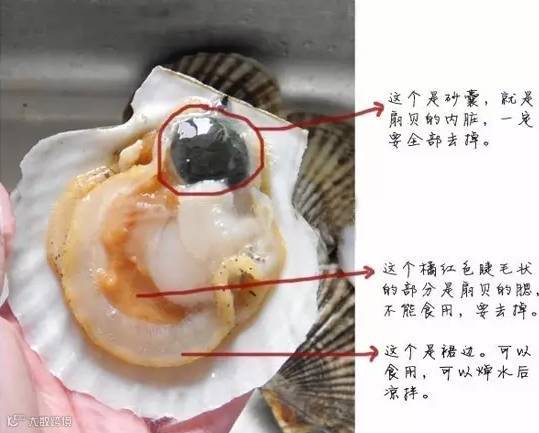 很形象吧,看着这个图,好好记住这些部位,以后买回来的扇贝就知道该怎么处理了。