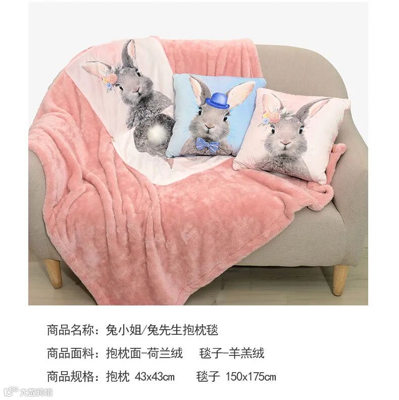 这款兔子两用抱枕毯,抱枕、毯子一体两用。精选“猫感”双面牛奶绒面料,正反一体设计。原价158元现复活节拼团价108元!