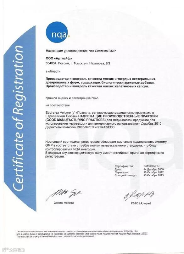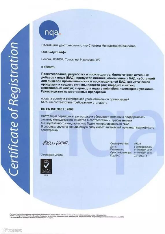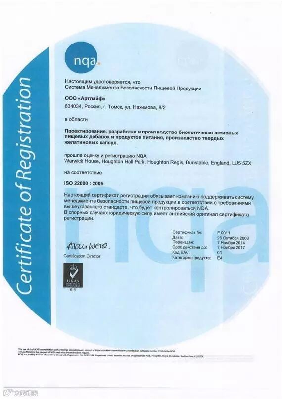 阿特莱福公司对食品的质量高度重视。阿特莱福公司是迄今为止俄罗斯唯一一家获得三项国际认证的公司,符合ISO国际质量管理体系认证,HACCP国际食品安全认证和GMP国际生产质量管理认证。公司还积极参与国家公共健康计划。公司的口号是“共同走向健康的未来”。
