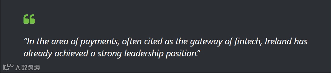 爱尔兰作为一个发展良好的金融中心,拥有世界领先的技术部门,在金融服务的数字化转型中处于有利地位。在经常被认为是金融科技门户的支付领域,爱尔兰已经取得了强大的领先地位,作为创新公司的所在地,比如Fexco, Stripe和Mastercard都有大型开发团队在这里运营。
