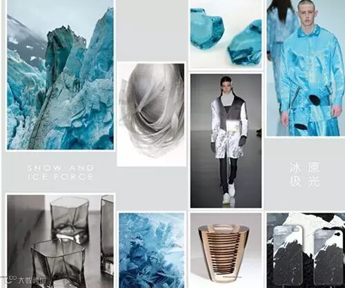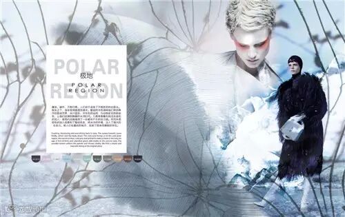 同样是极地的色彩主题,但是两种色彩元素还是有很大差别的。冰原极光宣誓了冰雪的力量、冰蓝和冰凌雾色的光泽,注入金属灰元素,冷感系数升级。大自然的冰柱反射出浅咖色的光芒,新的生态系统,人类需要珍视生命,审视新的生活方式。