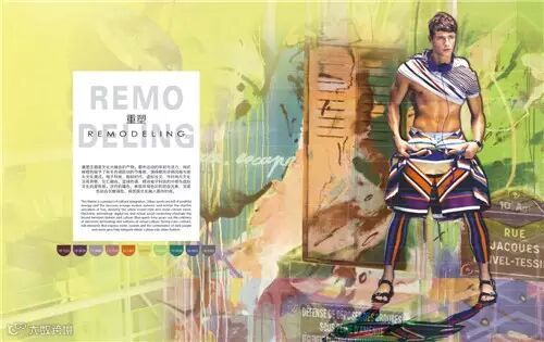 在重塑这一季主题中,我们可以看到调色盘引发的浑浊街头的风潮,其中灰橙色与亮橙色的对比运用,蔚蓝色与黑色的搭配组合,使整租色彩的混合设计充分体现出街头的能量。