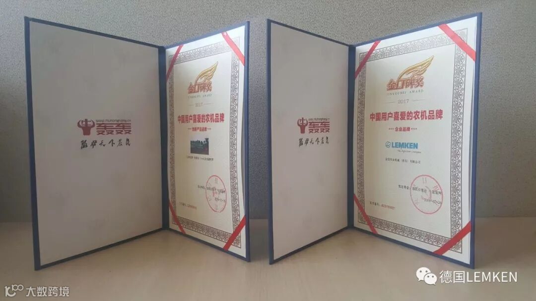 德国LEMKEN从2015年开始参与此次奖项的评选,以优质的产品质量,高效的作业效率,贴心的售后服务,连续三年得到广大用户的肯定,2017年德国LEMKEN荣获“金口碑”两项大奖,“中国用户喜爱的农机品牌”和“创新产品品牌”。