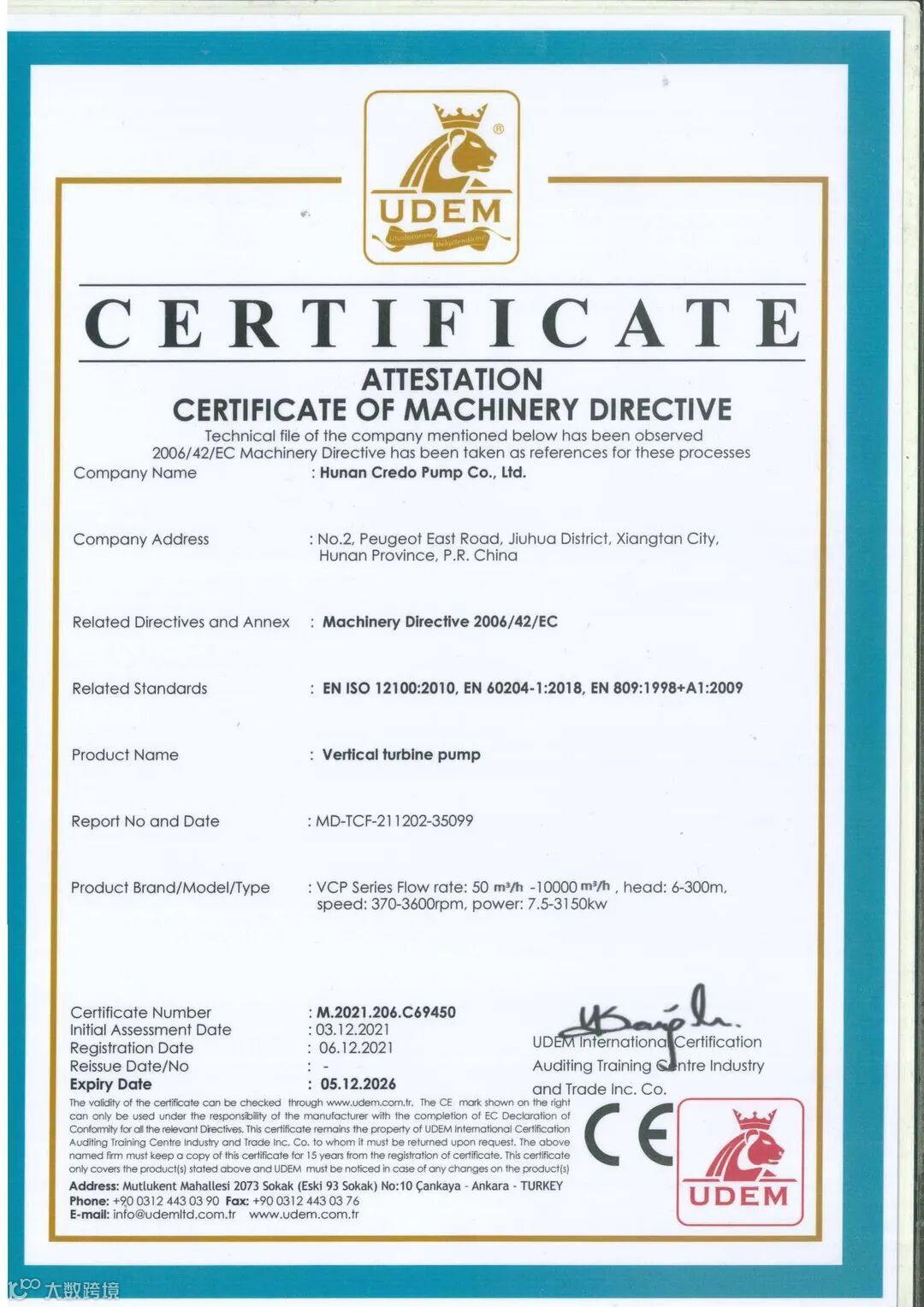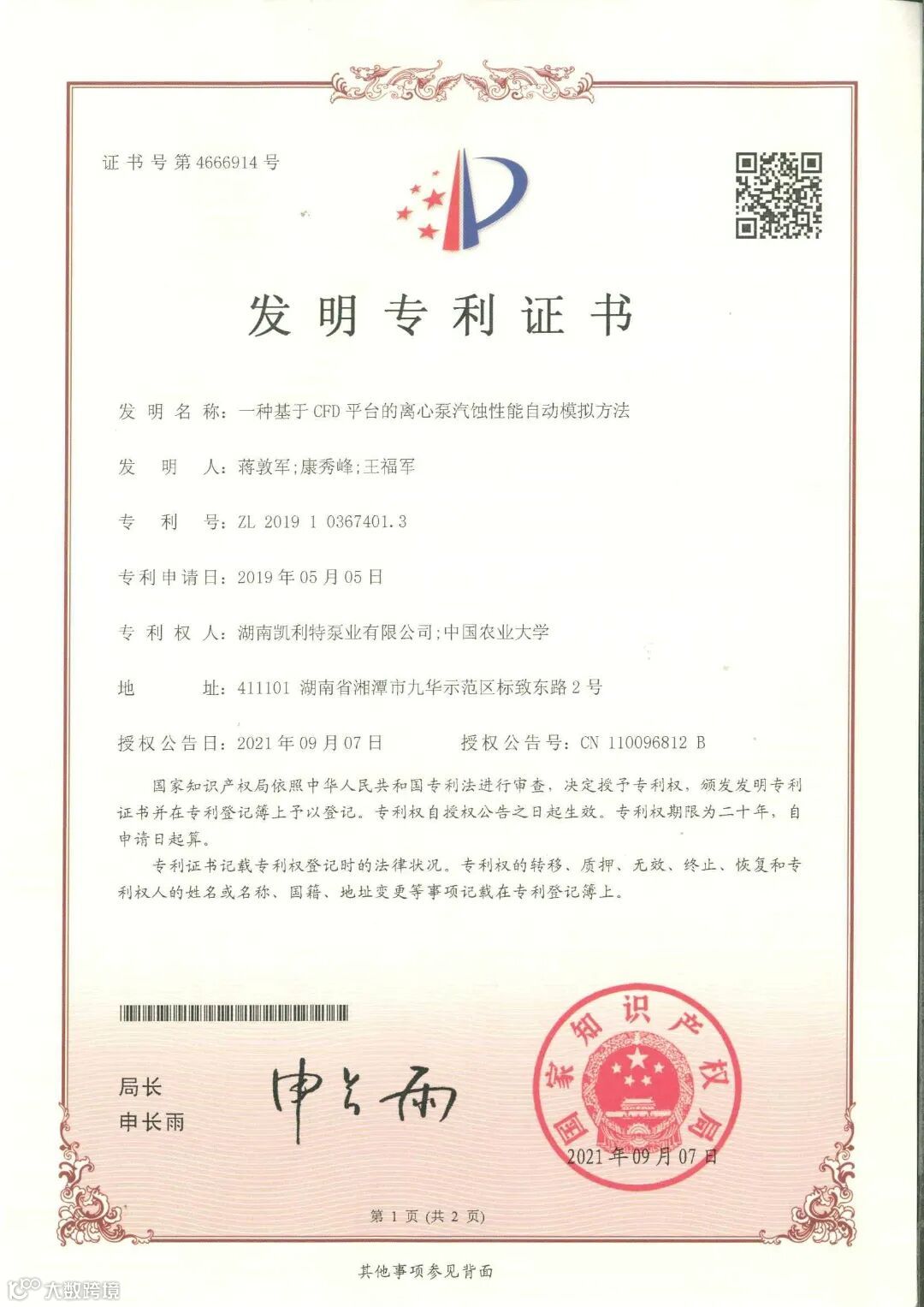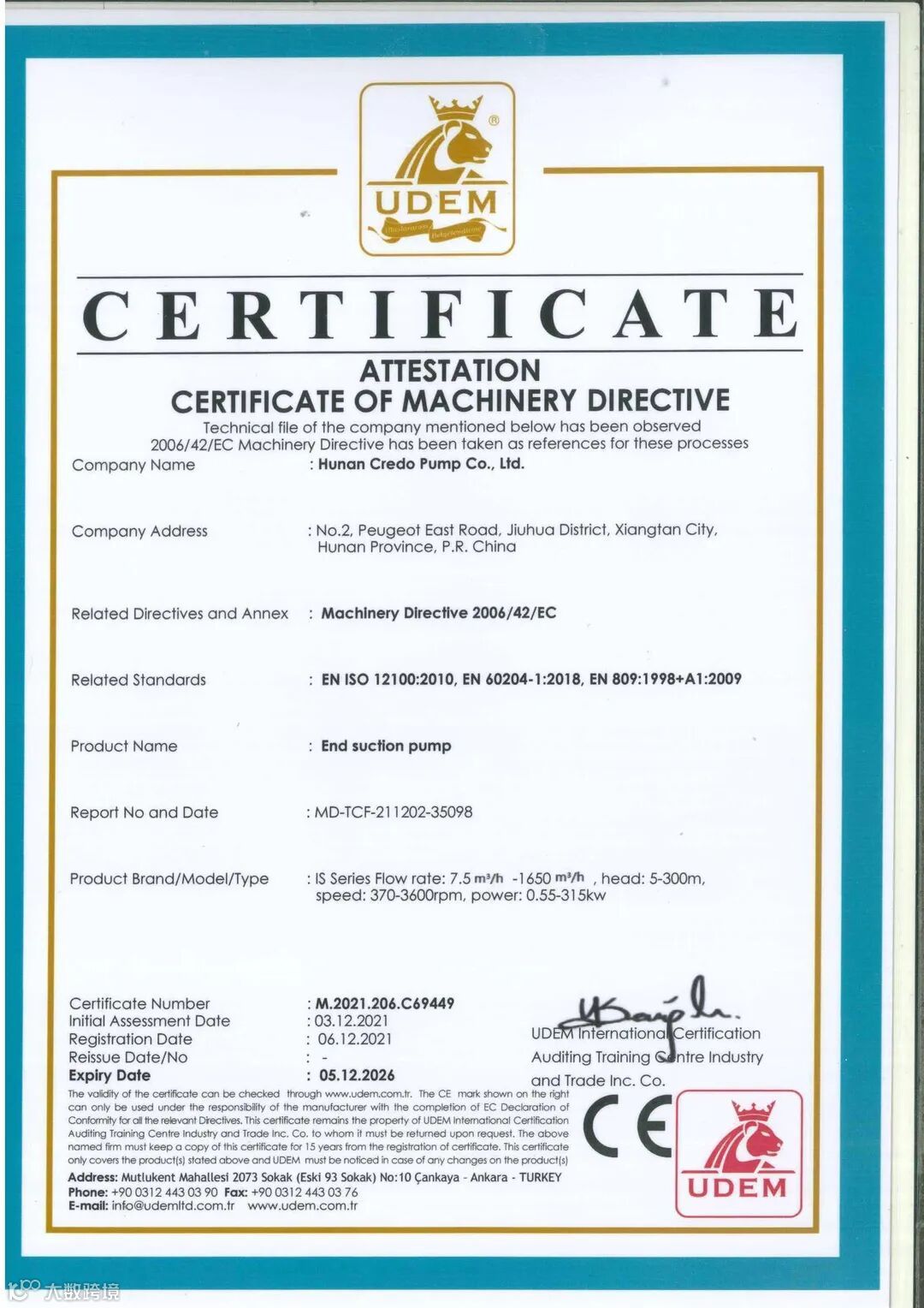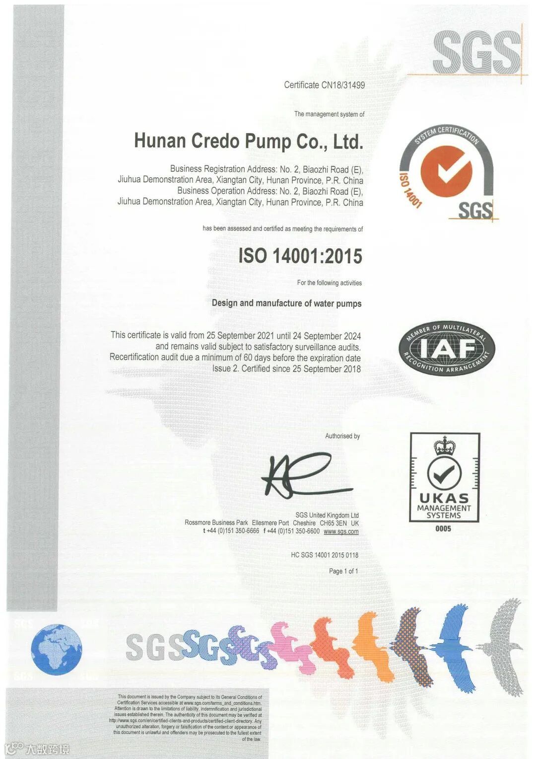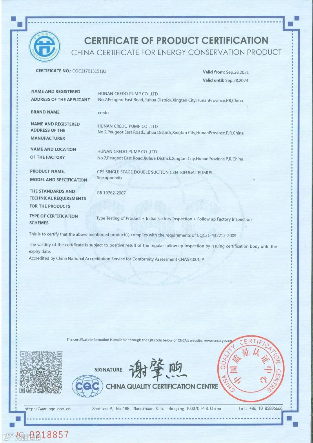 湖南凯利特泵业获得FM、UL国际消防认证证书。