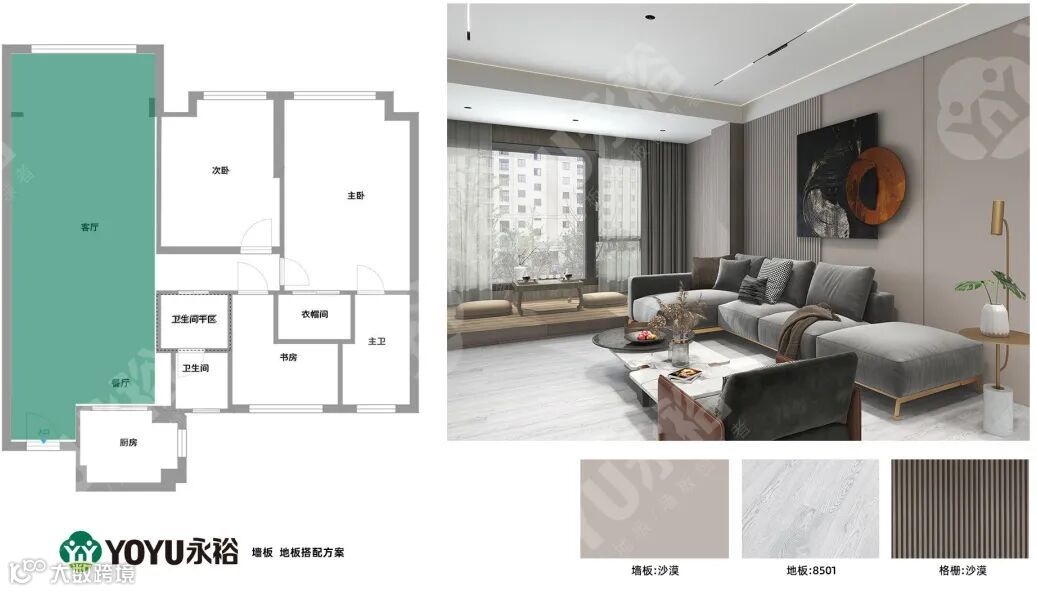 墙板-风铃灰 格栅-低调灰 地板-2008
