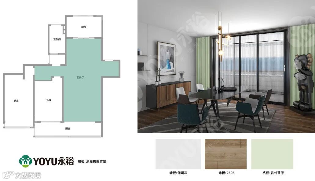 墙板-冰心美玉 格栅-车前草 地板-5001