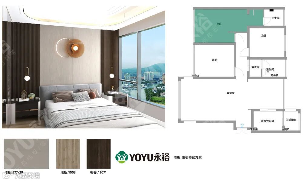 墙板-阿尔卑斯白 墙板-卡普里微风 地板-5001
