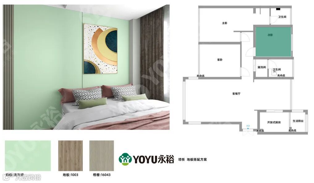 墙板-浅灰绿 格栅-16043 地板-1003