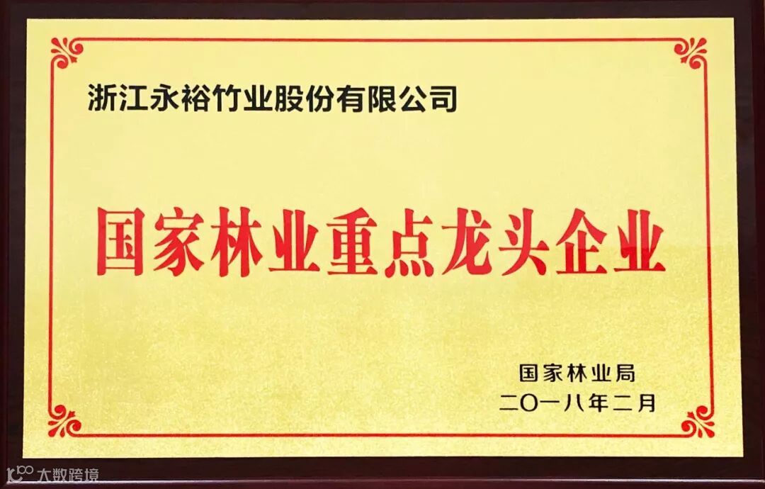 · 2月11日,经国家林业局考评,永裕竹业被授予“国家林业重点龙头企业”荣誉称号。