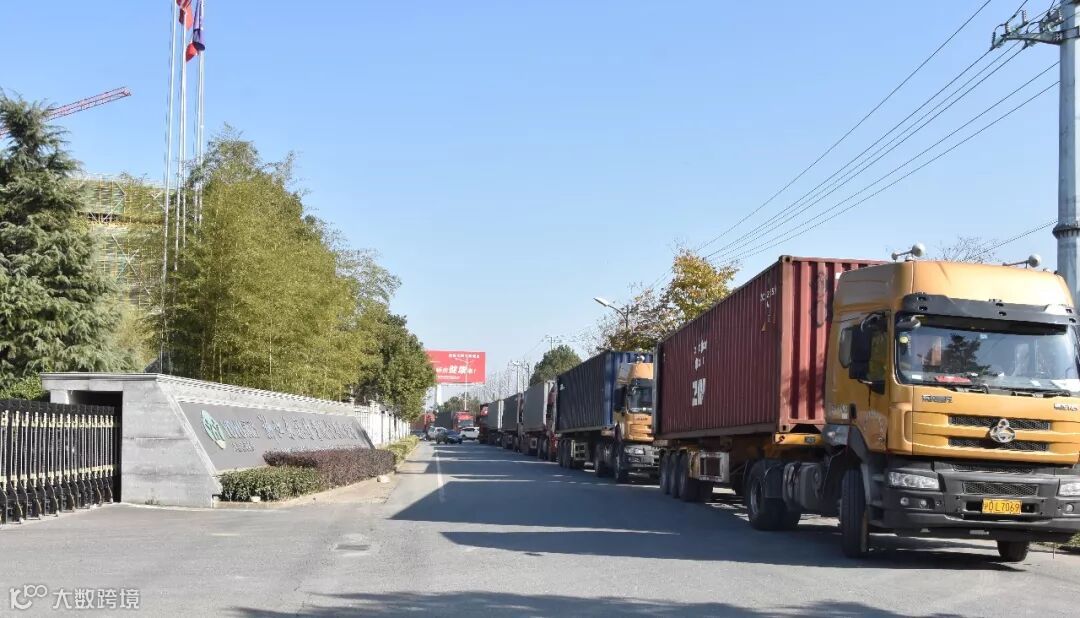 · 12月23日,永裕竹业门口的出货集装箱车队排着长长的看不到尾的长龙。