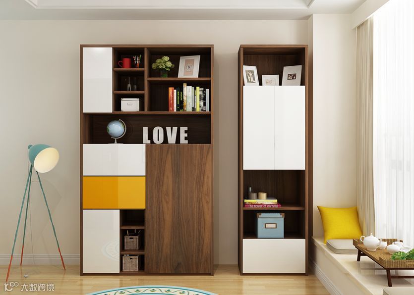 比如家里某一个房间某面墙是浅色调,那么可以选择暖色调的书柜辅以亮黄去做点缀,结合飘窗,打造一方阅读天地。