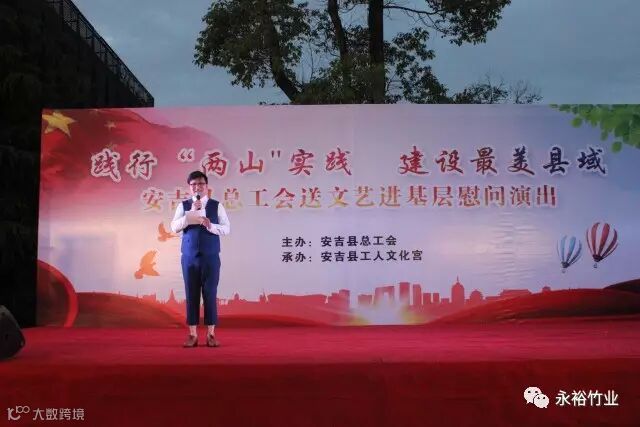 此次“践行'两山'实践 建设最美县域”送文艺进基层慰问汇演可谓是表演节目精彩纷呈、活动现场气氛热烈,让众多永裕人在欢乐气氛中感受到了文化的熏陶,感谢安吉县总工会、感谢安吉县工人文化宫、感谢所有的演艺人员、感谢背后付出汗水的工人们为我们献上如此精彩的演出。谢谢你们!