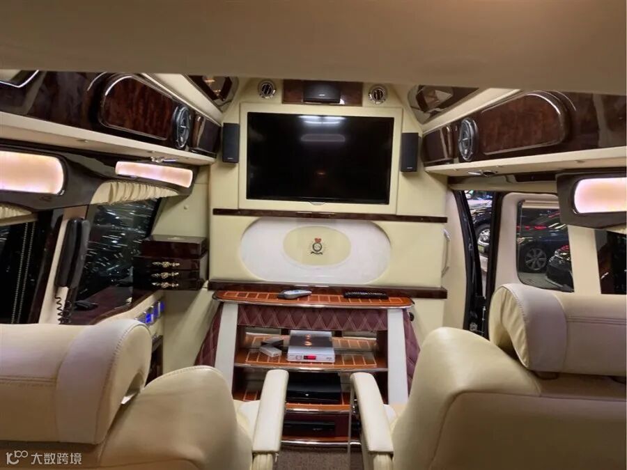 内饰方面,完全是一个豪华的总裁办公室,首先材质方面均为高级织物搭配真皮装饰,中控部分的设计风格则以简洁实用为主,配置方面,当时顶级的空气净化系统、一键式启动系统、空气质量表车载卫星电视、车载多声道HIFI音响系统、车载冰箱等应有尽有。