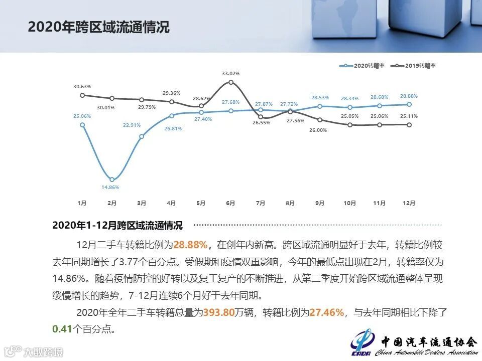 12月份全国二手车交易量环比增长明显,单月交易量为年内最高。依照二手车行业惯例,12月份是一个关键的时间节点,大部分经销商会调整价格,增加成交量,二手车市场需求较为活跃。