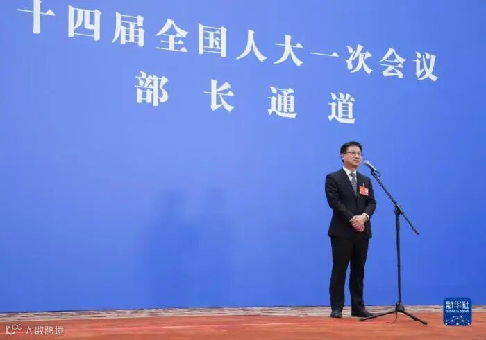 3月12日,第十四届全国人民代表大会第一次会议举行第三场“部长通道”采访活动。这是国家统计局局长康义接受媒体采访。新华社记者 才扬 摄