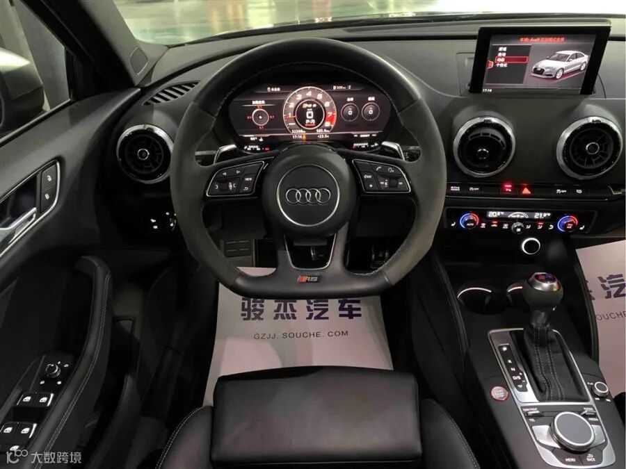 来到内部,大家会看到许多来自于A3的优点,相对于日系性能车来说真的也存在着许多优点,比如带有“RS”标以及翻毛皮的D型方向盘、精致的换挡杆、RSlogo的真皮座椅都彰显着豪华的运动气息。
