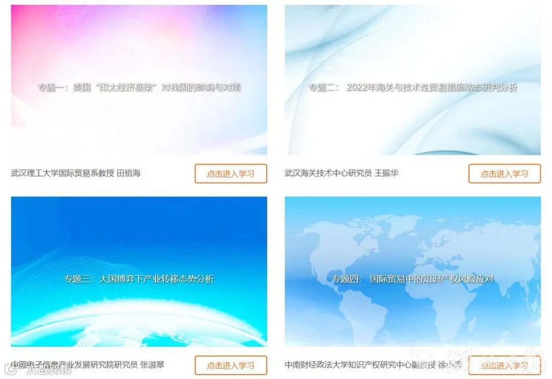 据悉,此次专题培训班聚焦《2022年海关与技术性贸易措施动态研判分析》《大国博弈下产业转移态势分析》《国际贸易中的知识产权风险应对》等6个专题,省内各级商务部门相关负责人,省经信、财政、人力资源与社会保障、农业农村等贸易调整援助协调机制成员单位联络员,省委台办、省知识产权局、省司法厅、武汉海关等相关部门负责人,“51020”现代产业集群成员企业、专精特新“小巨人”中小企业、“湖北老字号”企业、高新技术创新企业、台资企业等有涉外业务企业的相关负责人,湖南、江西、河南、陕西商务部门相关负责人共2500余人参与培训。