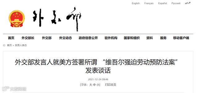 我国政府从去年开始采取了一系列反制措施,包括出台《中华人民共和国反外国制裁法》,对美国、加拿大、英国和欧盟有关机构、人员和实体实施制裁;发表《新疆各民族平等权利的保障》白皮书和《新疆的人口发展》白皮书等等。我国外交部发言人多次重申,美国故意制造散播关于新疆“强迫劳动”谎言,目的就是为了把中国从全球供应链产业链中排挤出去。
