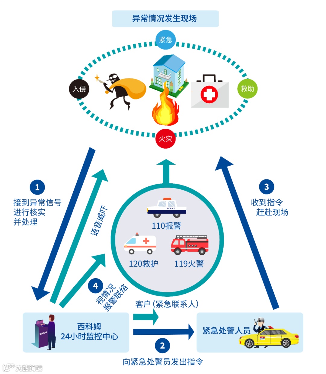 导读:当发生警情时,24小时运作的西科姆监控中心可第一时间通过图像复核进行现场确认并使用语音威吓,必要时请求公安、救护、消防等支援。真正实现可视化的即时安全服务。