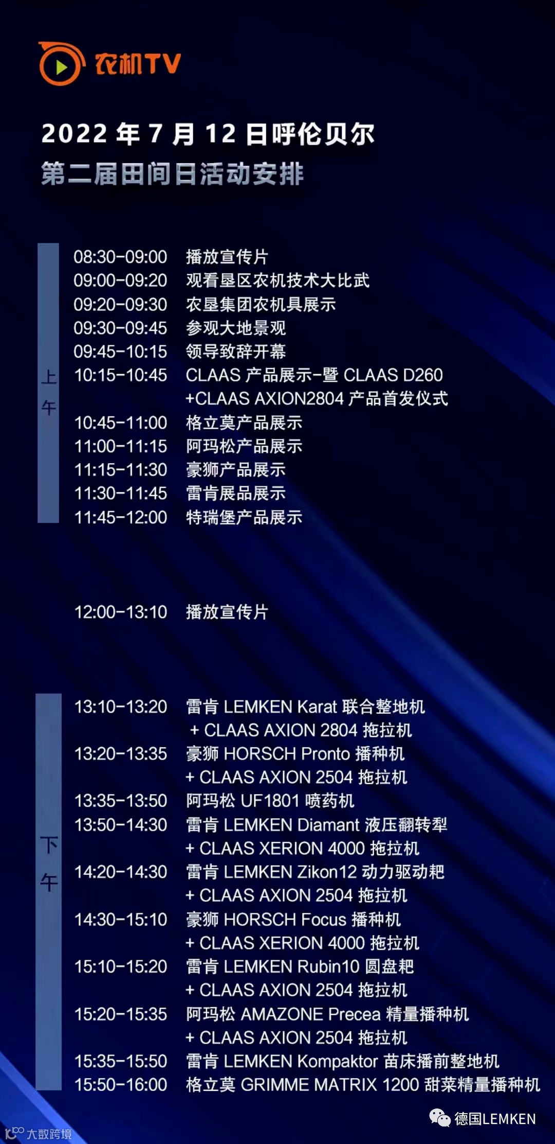 协办单位:科乐收(CLAAS)、德国雷肯LEMKEN、格立莫GRIMME、豪狮、阿玛松和特瑞堡。