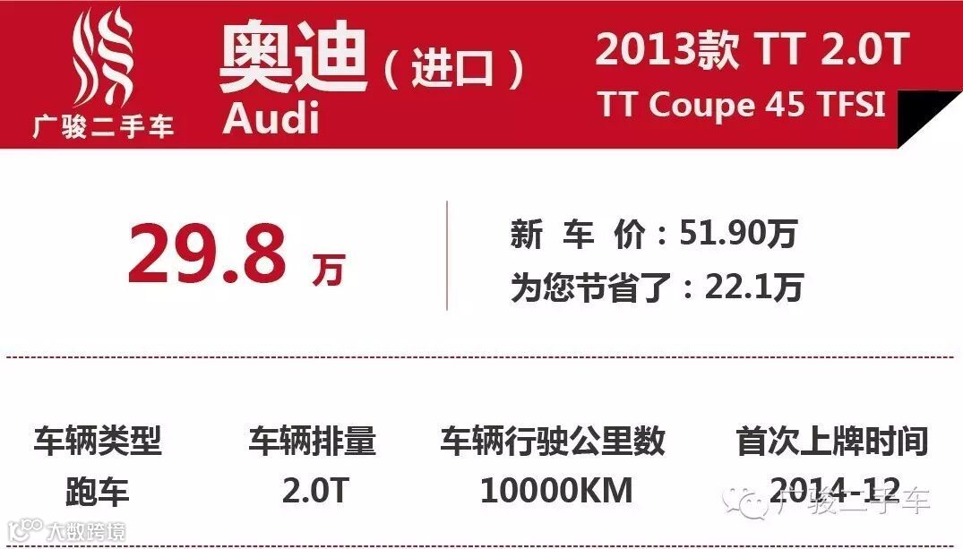 【每日新到车】29.8万丨2013款 奥迪(进口)TT 2.0T 广骏二手车