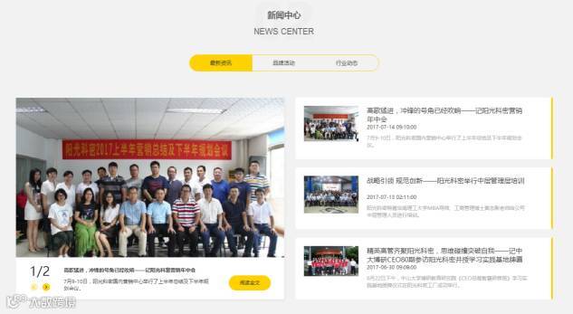 全新的阳光科密官网,用更加简洁的页面力求给浏览者最直观的视觉效果。产品栏目,精准的分类,能让浏览者用最快的速度,查询到想要看的产品信息;首页上的 企业新闻,让访客最快速地了解公司最近的动态与行业资讯。