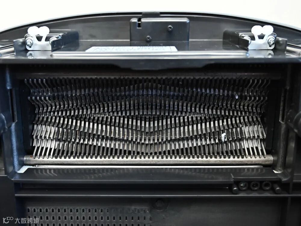 作为一款高效的碎纸机可不能光看外观,还需要打开看到内部结构和刀头设计。通过机身侧面,我们可以拉出科密L9650碎纸机的碎纸箱部分,该产品碎纸箱与前面板采用一体式设计,有效的提升了内部纸屑的承接效率。