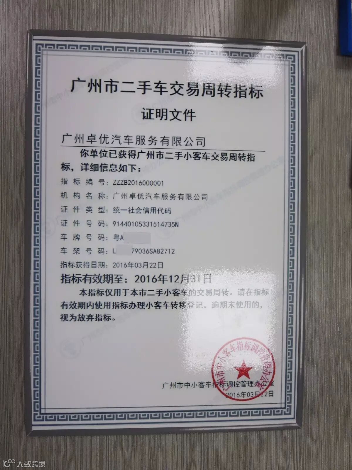 2016年3月22日上午,广州市二手中小客车交易周转指标使用流程在广骏二手车交易市场进行首次使用。