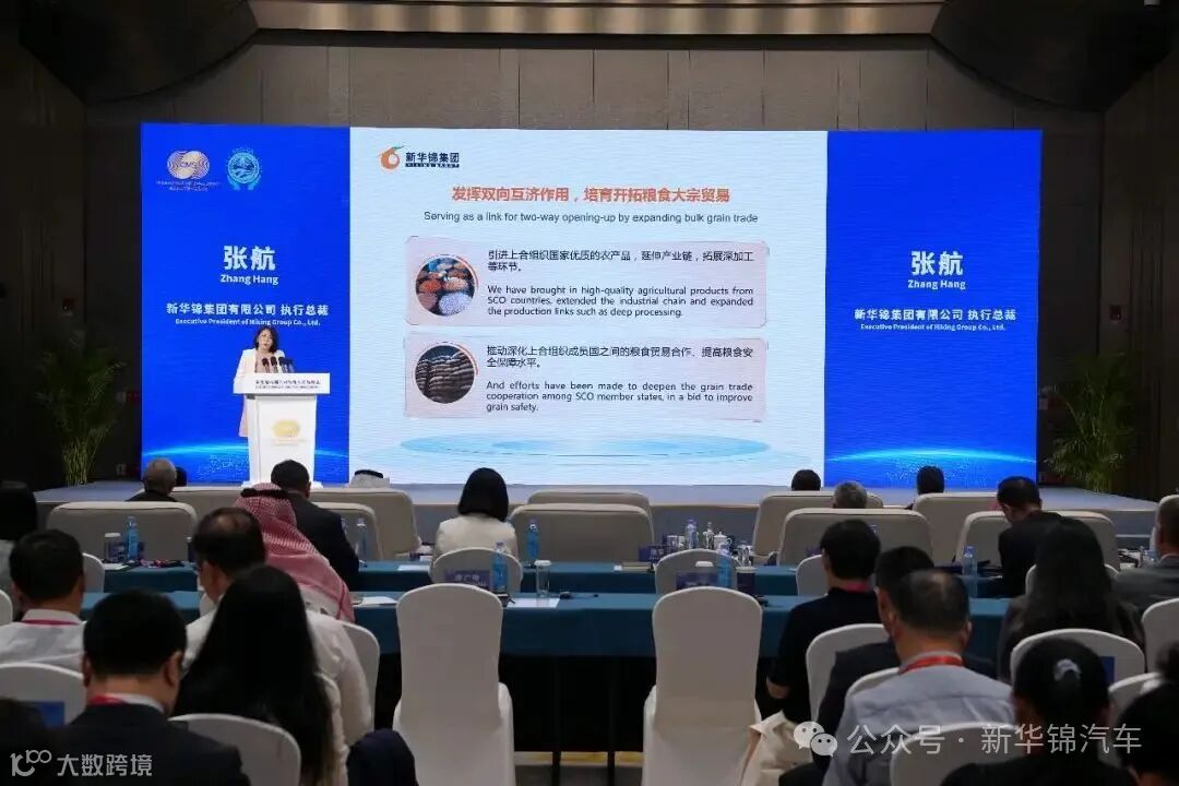 张航执行总裁指出,集团一直把上合示范区作为加快高质量发展的重要支点,聚焦示范区四大中心建设,重点培育发展二手车、粮食大宗贸易等业务,2023年二手车出口额10115万美元,比上年增长约5倍,上合组织国家占到出口额的60%以上,积极为上合示范区建设贡献“新华锦力量”。