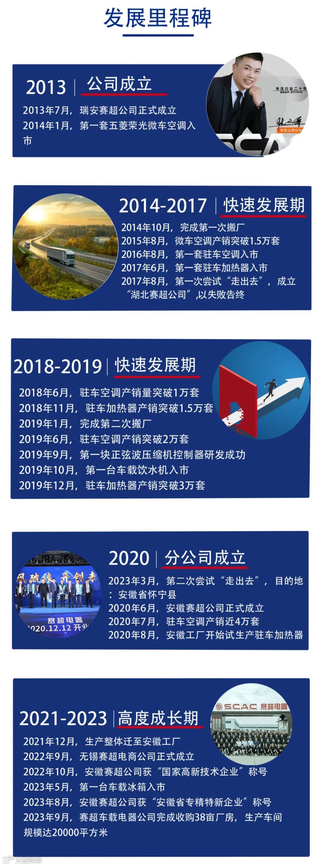安徽赛超电器有限公司是一家专业从事开发生产汽车空调系统及相关零配件的企业,赛超电器以“尽全力让客户满意”的指导思想,为客户提供专业、科学的空调系统解决方案。特别值得一提的是,驻车电动空调和驻车加热器的适用范围较广,不仅适用于火车、巴士、卡车、工程车,矿山机械的空调系统,还可以适用于渔船、游艇的空调系统等领域,市场应用面大,发展空间巨大。截至2024年12月,已申请 89 项专利,含8项发明授权,拥有17项软件著作权,荣获多项荣誉。2024年研发投入603万元。2024年营收破亿,拥有300余经销商,网络遍布全国,产品畅销全球30多国。2023年12月启动纳斯达克上市进程,已完成红筹架构搭建及合规整改,拟发行200万。赛超电器不断追求创新与质量,未来将继续引领行业,提供更优质产品服务。