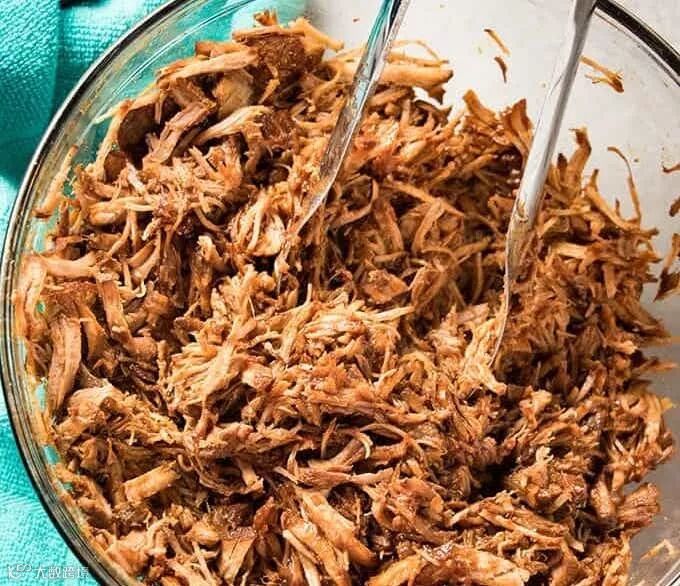 出锅后,可以用叉子或搅拌器把猪肉切碎,在肉上撒上香菜、碎奶酪、莎莎酱、酸奶油,再配合你喜欢的沙拉一起放在墨西哥玉米片或玉米卷上,一道南美风味猪肩肉菜肴就完成了。