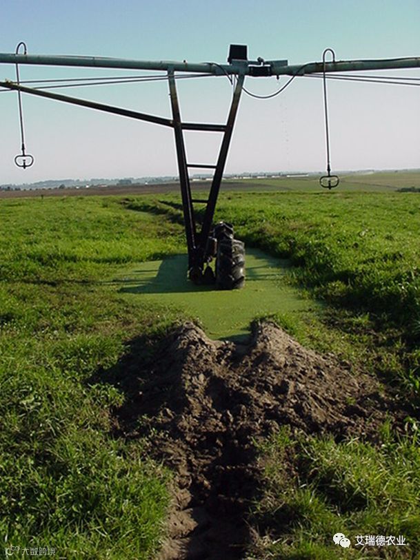 大型喷灌机的标准跨体净通过能力为2.9米左右,但轮胎在经过垄沟的时候,其净通过能力将减少到2.8-2.7米左右,因此地里不能有限制设备通过的障碍物。地里不能有大土堆,会把设备担在土堆上造成驱动系统的损坏。