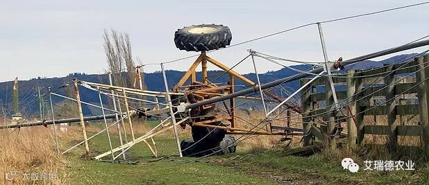 小编特别提醒:不要让大型拖拉机等农业机械从设备底下穿越,一旦碰到设备,就会像下面的图片哟,连根拔起!